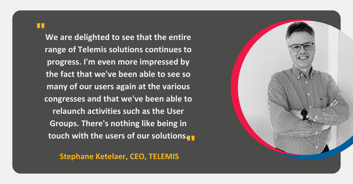The CEO of the Telemis Group, Stephane Ketelaer, expressed his satisfaction with this year's results: "We are delighted to see that the entire range of Telemis solutions continues to progress. I'm even more impressed by the fact that we've been able to see so many of our users again at the various congresses and that we've been able to relaunch activities such as the User Groups. There's nothing like being in touch with the users of our solutions."