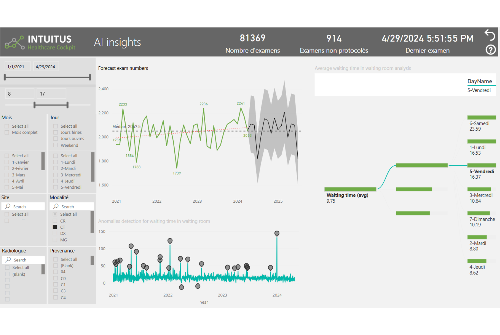 Concreet kan INTUITUS nu de activiteit van laboratoria of radiologieafdelingen voor de komende maanden voorspellen. Het werpt ook licht op waargenomen verschijnselen, zoals langere wachttijden in de wachtkamer, door de bepalende factoren te identificeren, zoals het type apparatuur dat wordt gebruikt, de beschikbaarheid van personeel of variaties afhankelijk van het uur en de dag van de week.